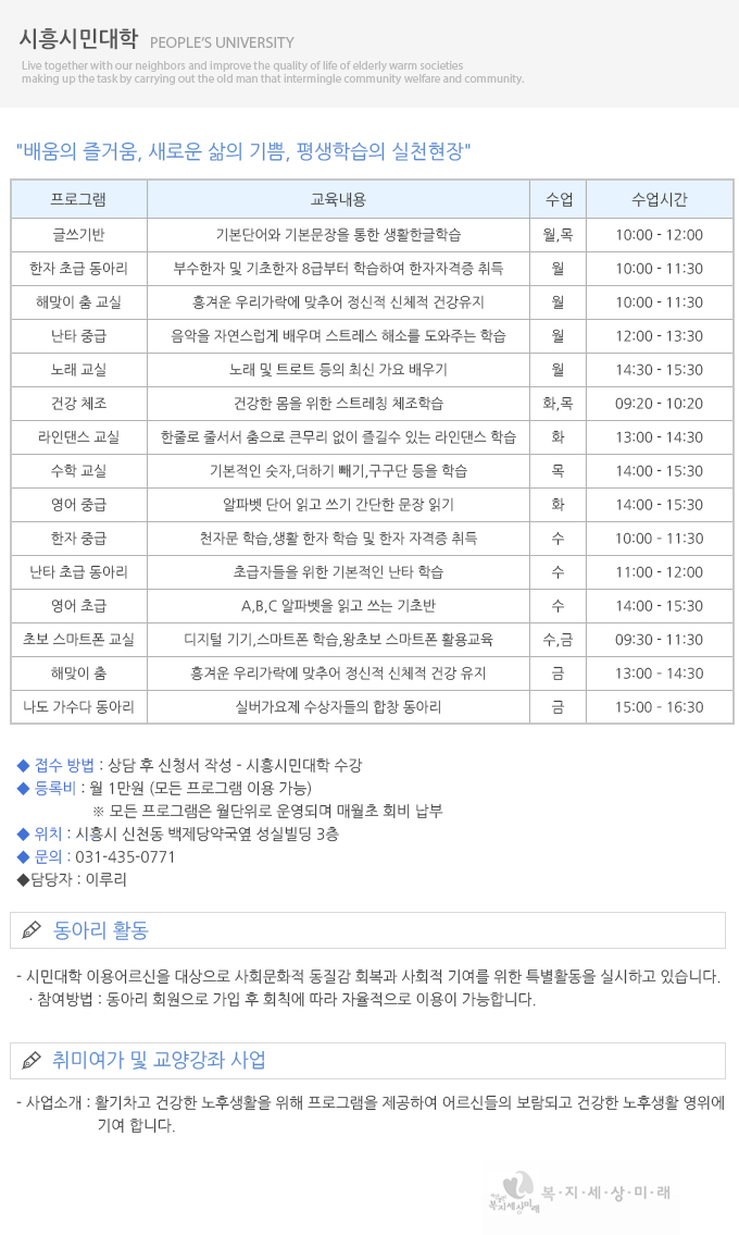 사업안내 > 시흥시민대학