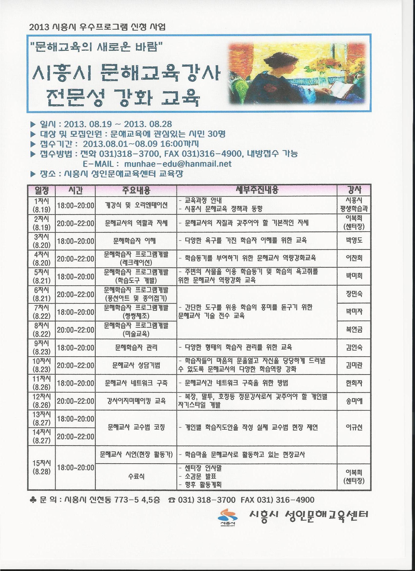 ´2013 시흥시 문해교육강사 전문성 강화 교육 수강생 모집´