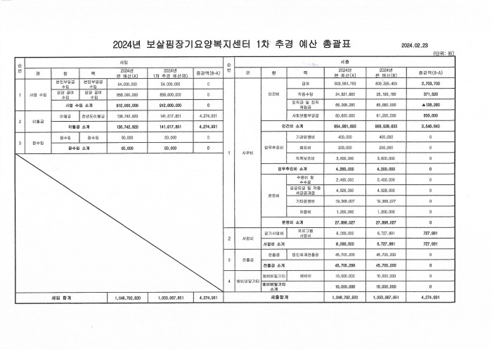 2024년 장기요양복지센터 1차 추경
