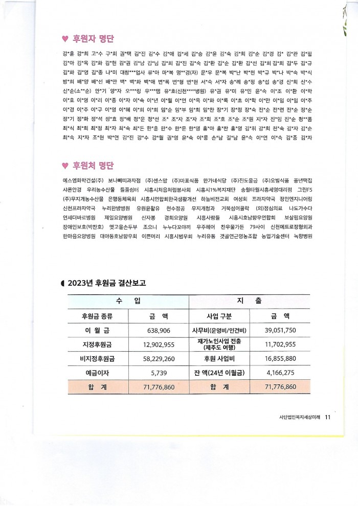 사단법인복지세상미래 2023년 후원금 결산보고