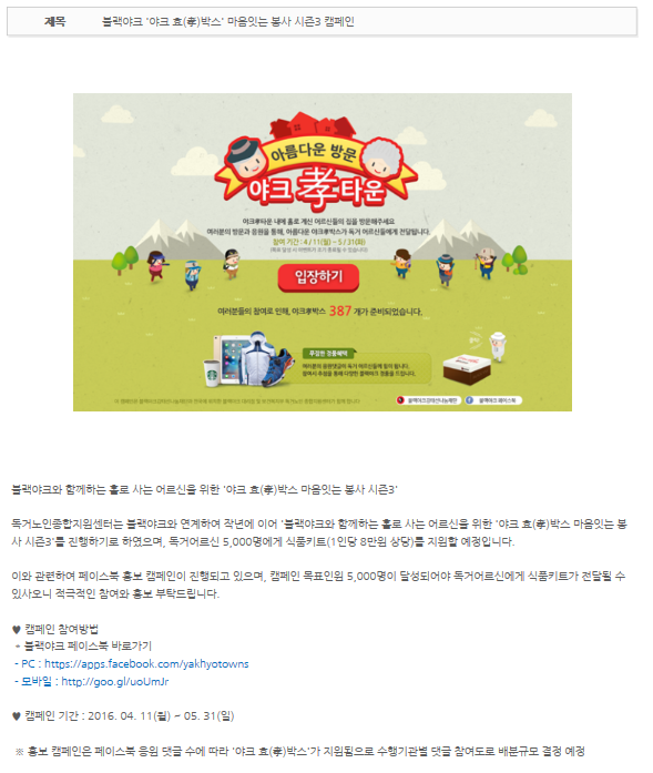 1.블랙야크와 함께하는 {야크 효(孝)박스 마음잇는 봉사 시즌3} 참여 안내