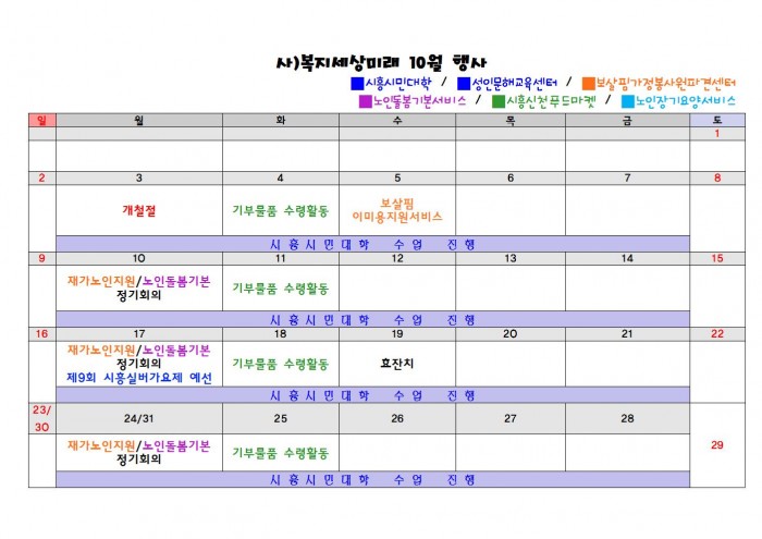 *****사단법인 복지세상미래 10월행사안내입니다 *****