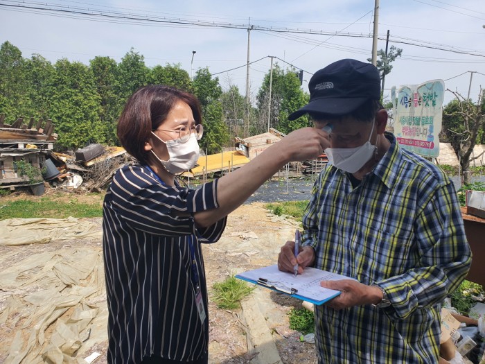 치유농업은 텃밭에서 하는 외부활동으로 수도권 방역지침에 따라 명부관리, 손소독제 비치, 발열체크 를