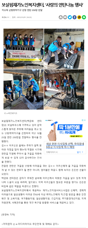 재가노인지원서비스 저소득 난방 취약가구 연탄전달