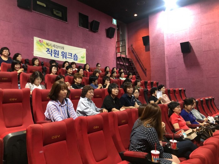 복지세상미래 직원분들이 모두 즐겁게 영화관람후 식당으로 이동하여