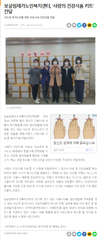 2021년 긴급지원 식품키트 e-비전라이프 보도자료.