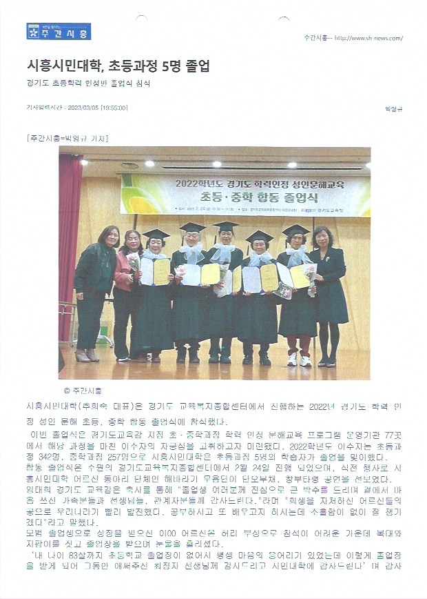 시흥시민대학, 초등과정 5명 졸업
