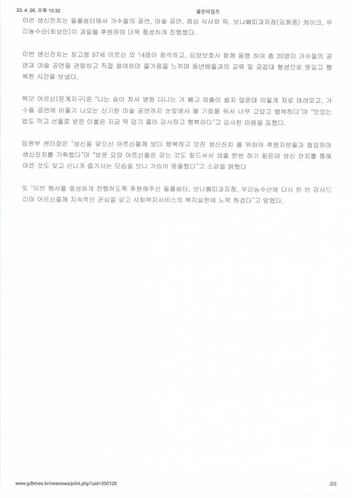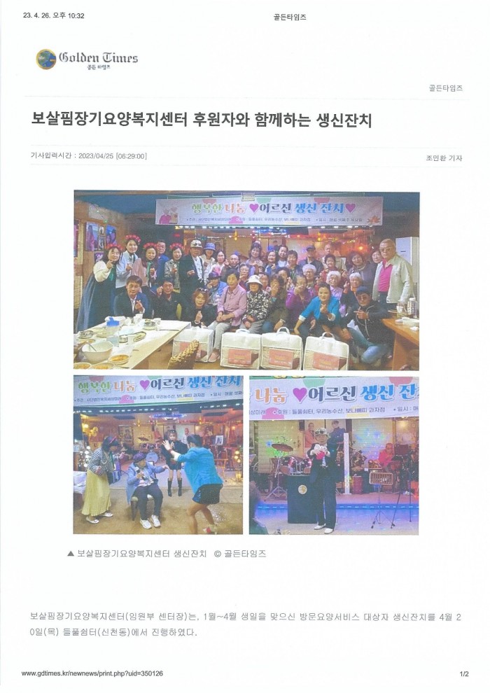 보살핌장기요양복지센터 후원자와 함께 하는 생신 잔치