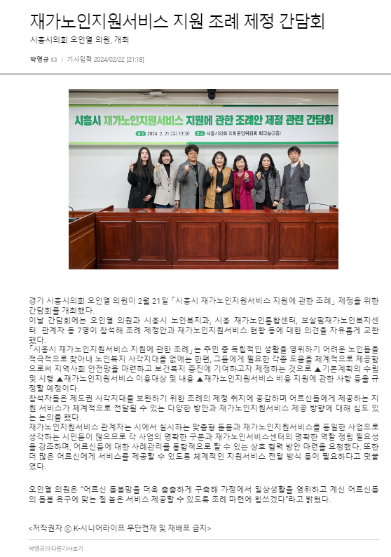 재가노인지원서비스 조례 제정 간담회