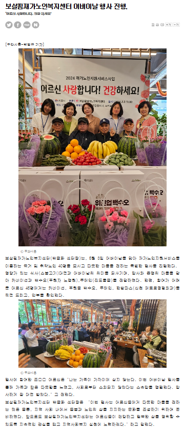 보살핌재가노인복지센터 어버이날 행사 진행.:주간시흥-- http://www.sh-news.com/