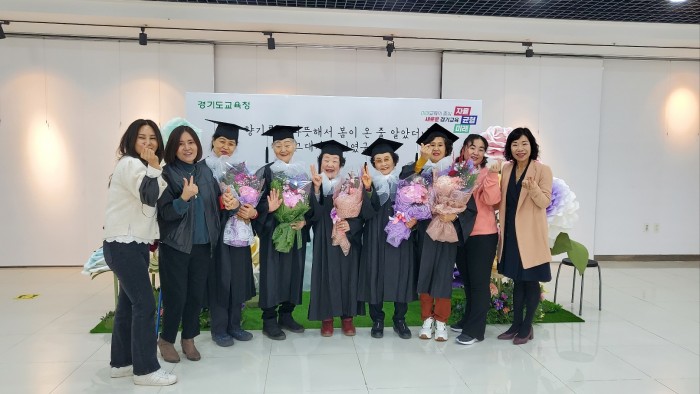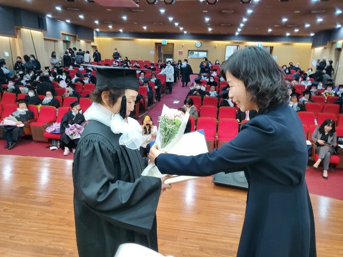 70여년만에 초등학교 졸업장을 획득 하신 학습자분들에게 응원의 박수를