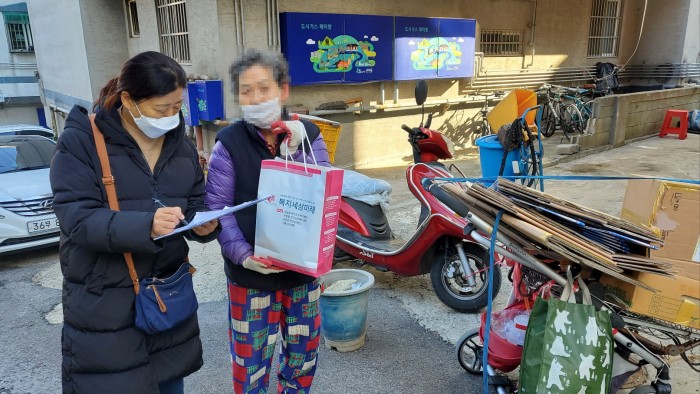 당일 82명 모두 배부해야 하므로 봉사자님 2명이 함께 진행하였음.