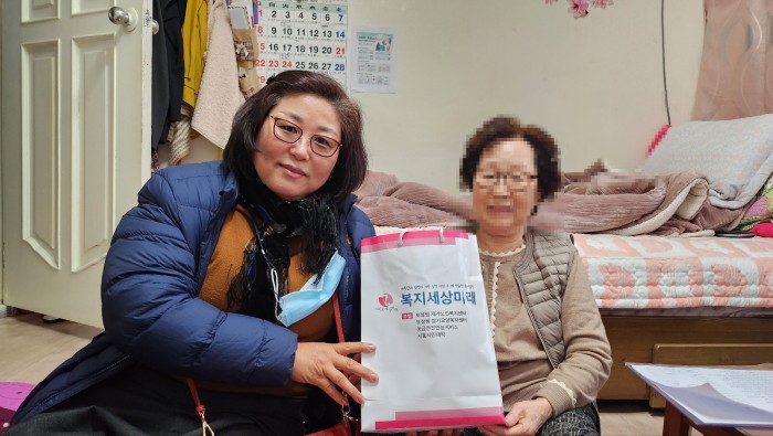 ▲자원 봉사자 김도윤님과 재가노인지원서비스 대상자